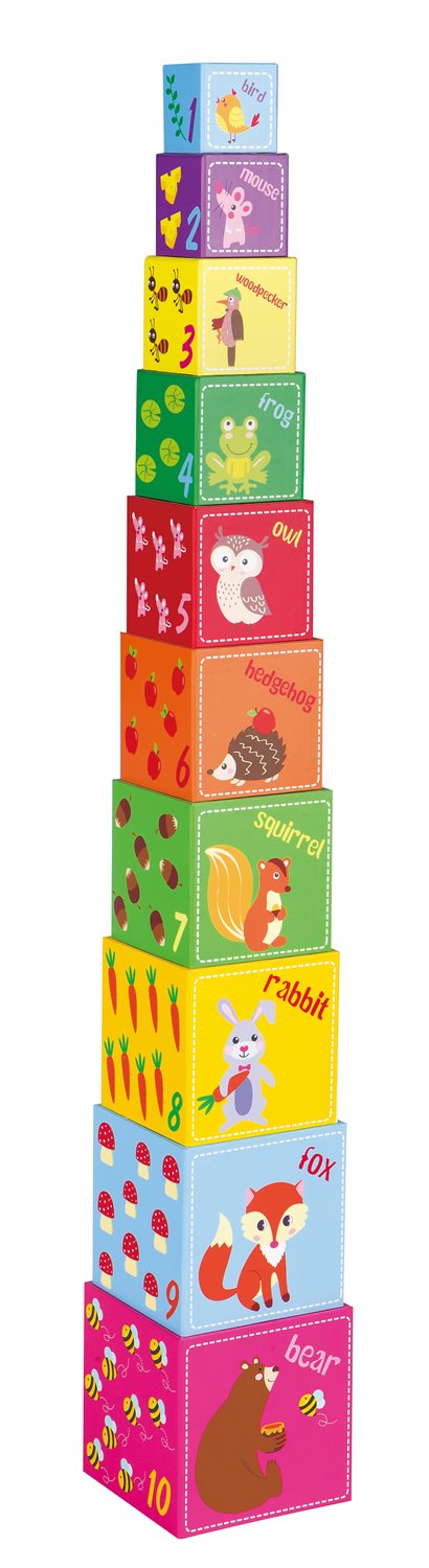 Deze kleurrijke stapelblokken van Lelin® zijn ideaal voor kleine handjes om te bouwen, stapelen en ontdekken. De set bestaat uit prachtig geïllustreerde kubussen met vrolijke bosdieren, getallen en natuurelementen die spelenderwijs uitnodigen tot leren.