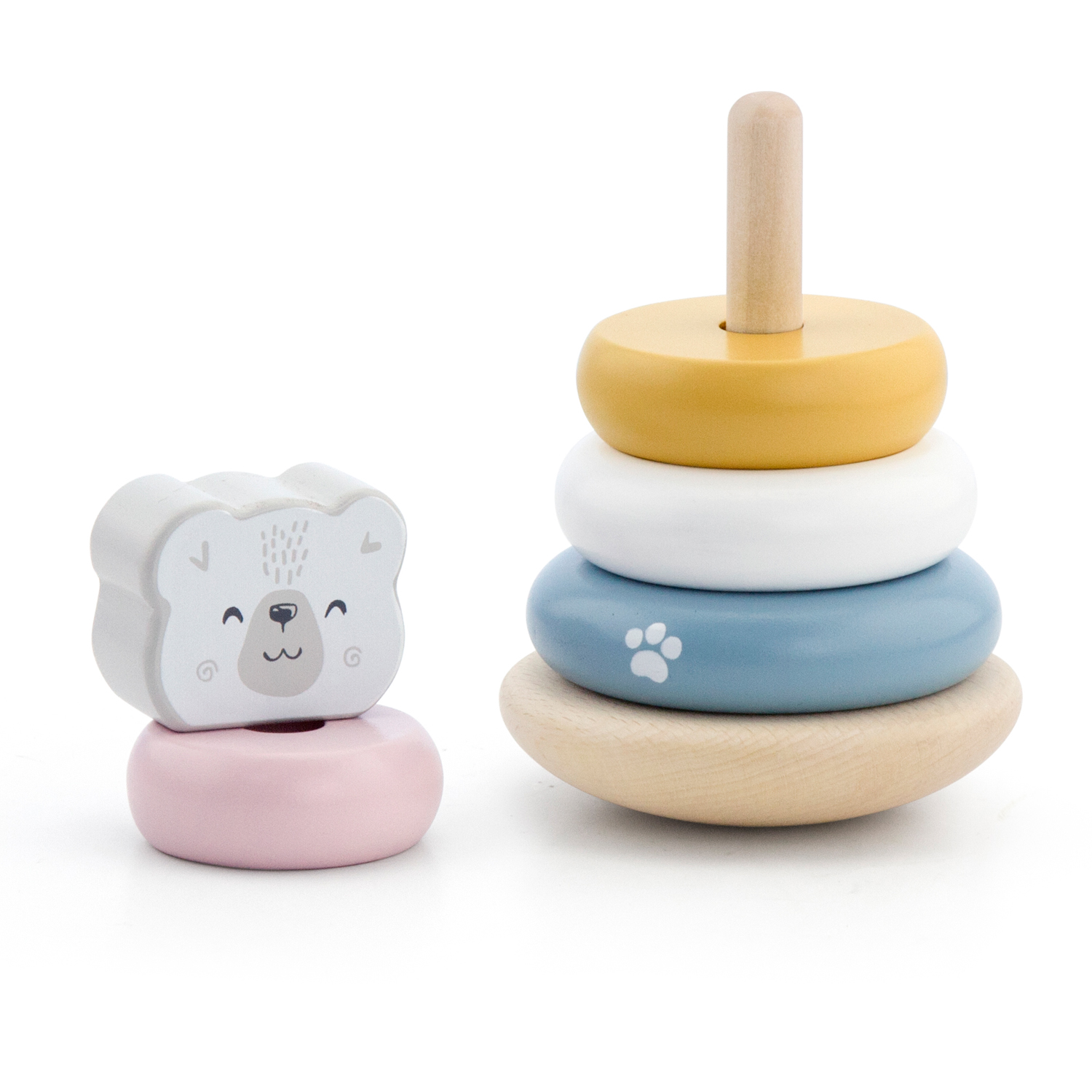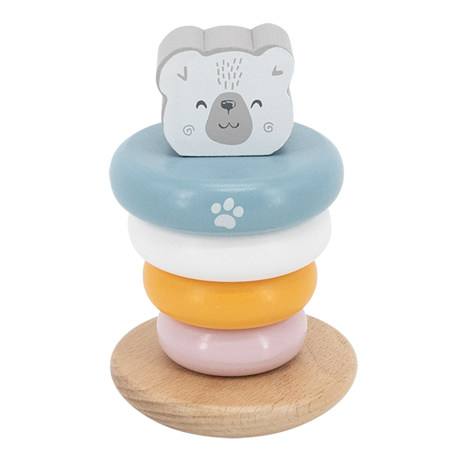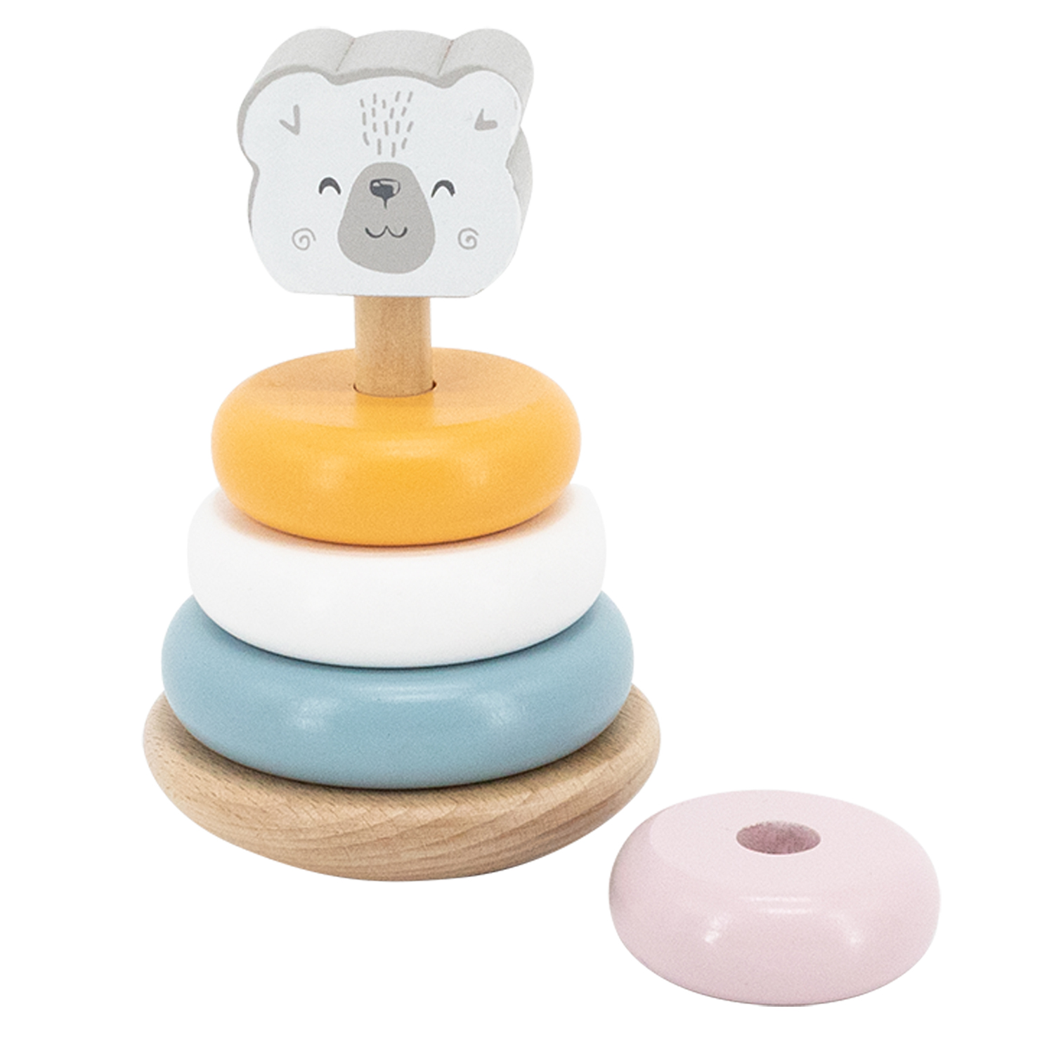 "Ronde vorm, ingetogen kleur, lief temperament" dit zijn de kenmerken van deze stapelaar, waardoor het speelgoed briljant is.