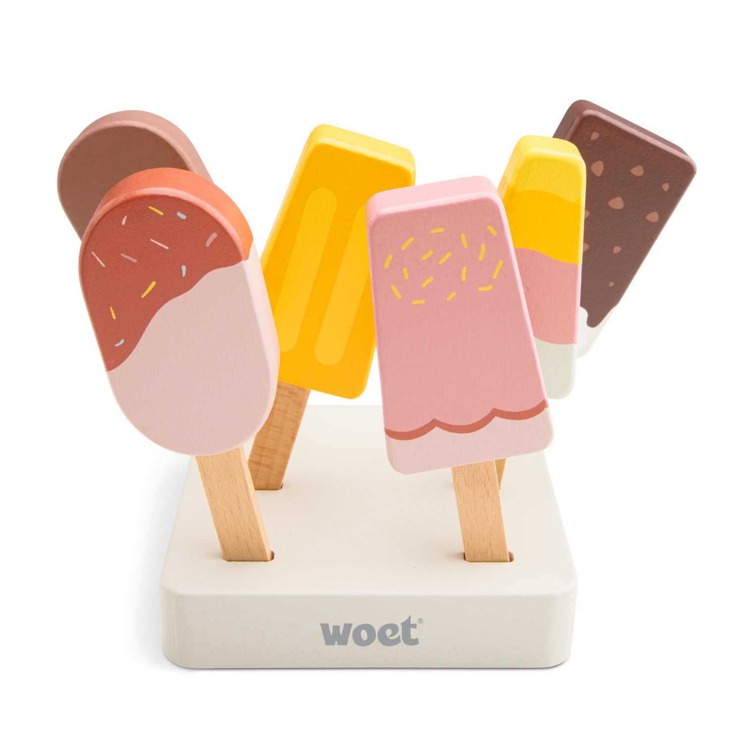 Ontdek de houten ijsjesset van Woet® , ideaal voor fantasierijk spel. Deze set bevat zes prachtig gekleurde houten ijsjes, allemaal netjes geordend in een handige houten houder. Of je nu een picknick organiseert, een ijskraampje runt, of gewoon wilt genieten van een verfrissende traktatie, deze ijsjesset biedt eindeloze mogelijkheden voor rollenspel.