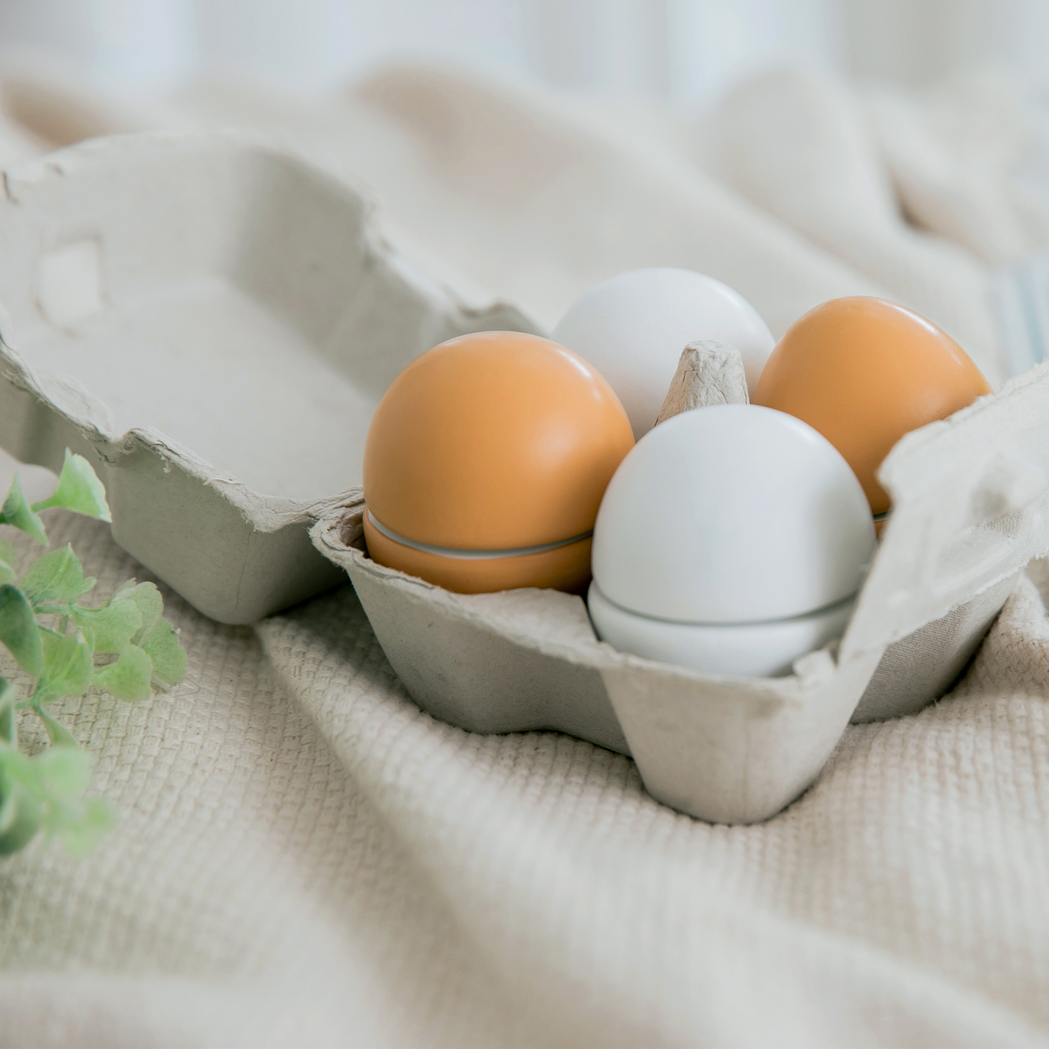 Doos met 4 eieren, bijna niet van echt te onderscheiden. Spelen met deze houten eieren is zowel leuk als leerzaam en bevordert de creativiteit van kinderen. Deze houten eieren van New Classic Toys is onderdeel van de Bon Appetit productlijn. Snijden, bakken, koken en aan tafel! De potjes, pannetjes, snijsetjes en keukentjes zijn absolute musthaves voor kleine keukenprinsjes en -prinsesjes.