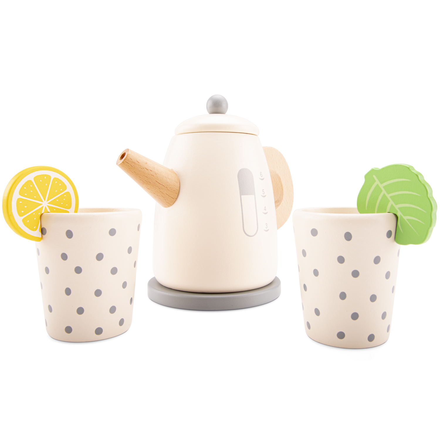 Deze houten theeset van Woet® is ideaal voor kinderen die dol zijn op rollenspel en het naspelen van dagelijkse momenten. Met de stijlvolle waterkoker, twee bekers en houten citroen- en muntdecoraties kunnen kinderen hun eigen “thee” maken, schenken en uitdelen. Perfect houten speelgoed dat fantasie, taal en sociaal spel stimuleert.