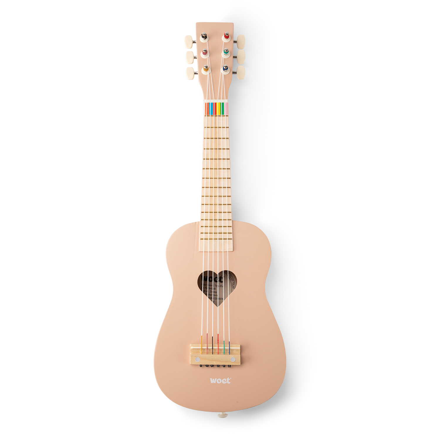 Laat de muzikale fantasie van je kleintje tot leven komen met deze houten speelgoedgitaar van Woet®! Perfect voor jonge muzikanten die dol zijn op muziek maken, zingen en optreden. Met deze gitaar stappen kinderen in hun eigen muzikale wereld vol fantasie en ontdekking. Of ze nu meespelen met hun favoriete liedjes of zelf een nieuw deuntje verzinnen - deze kindergitaar is ideaal voor muzikale rollenspellen, creatieve expressie en eerste kennismaking met ritme en geluid.